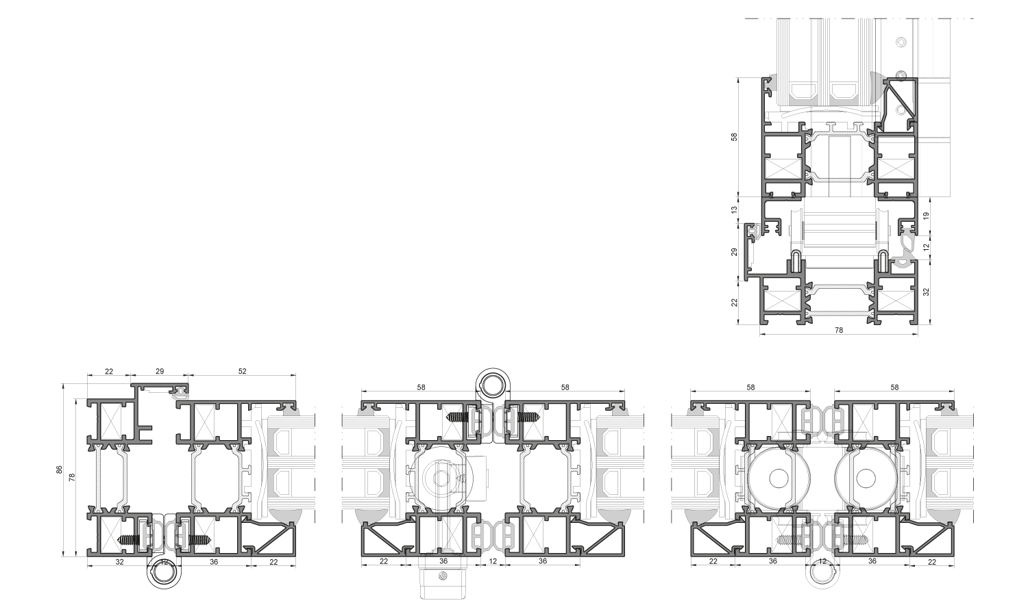 - driekamerstructuur zorgt voor een hoge duurzaamheid van het profiel, waardoor de constructie van grote constructies mogelijk is (L ≤ 1200 mm of H ≤ 3500 mm met een maximaal vleugelgewicht van 120 kg)