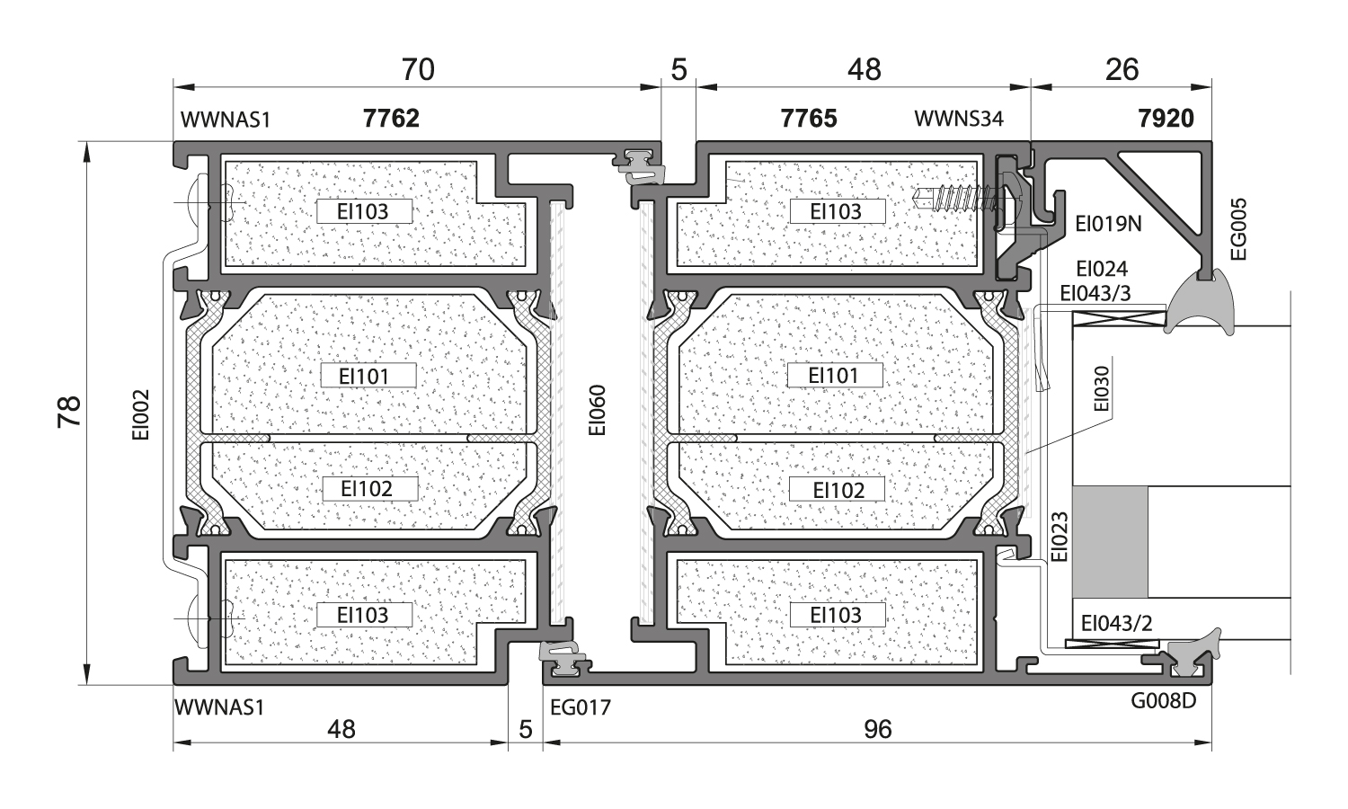 - mogelijkheid om te combineren met EI30 brandsystemen door gebruik te maken van dezelfde profieldiepte van 78 mm