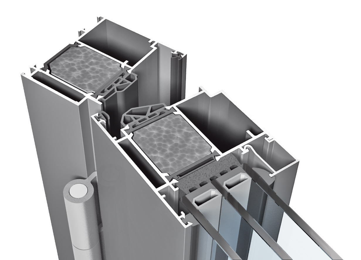 - constructie van coplanaire profielen (sponningafstand – 18 mm)