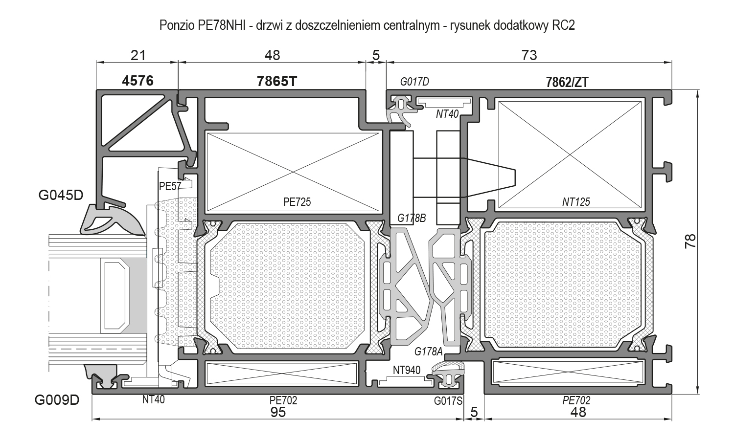 - verschillende varianten thermische isolatie, afhankelijk van de gebruikte isolatie-elementen: PE78N+, PE78NHI, PE78NHI+