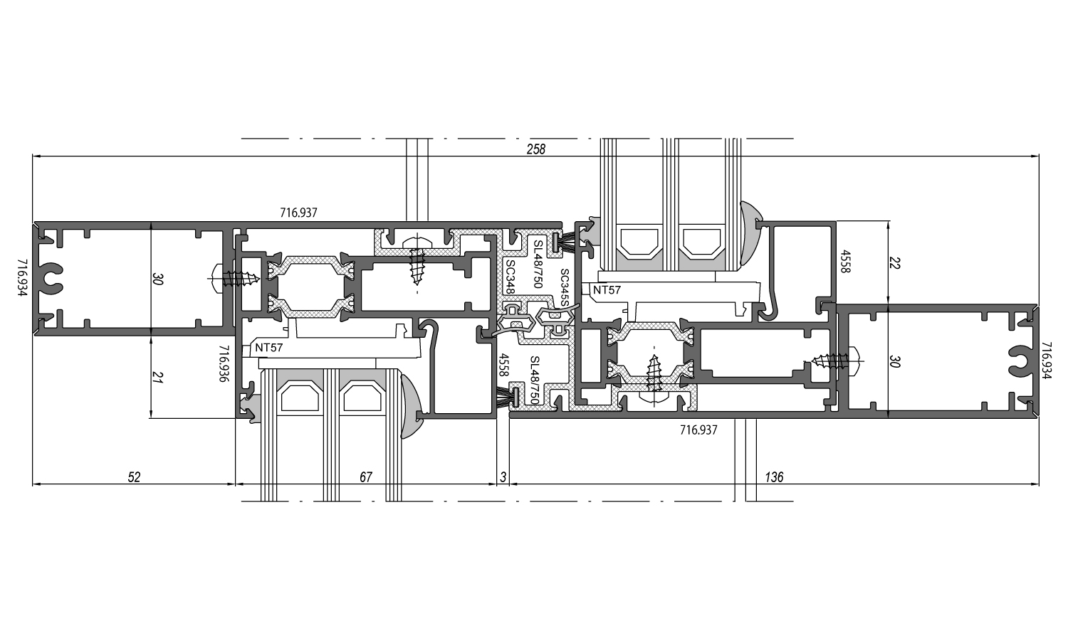 Thermisch geïsoleerd hef-schuifsysteem bedoeld voor het maken van externe ontwikkelelementen.
