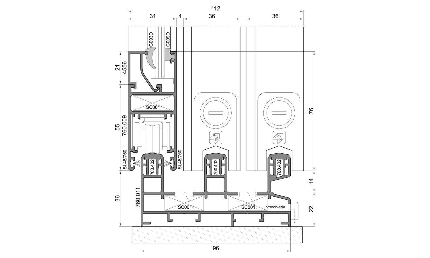 Een systeem zonder thermische isolatie bedoeld voor het maken van binnen- of buitenramen en schuifdeuren, bijvoorbeeld diverse soorten schuifscheidingswanden, balkons en loggia’s.